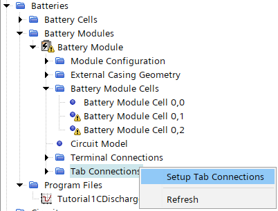 可以使用极耳连接器来建模电池单元正极和负极极耳之间的物理连接。对于常规电池单元构造,可以使用单个极耳连接器,Simcenter STAR-CCM+ 将使用该连接器的副本来连接电池模块中的所有极耳。已为本教程准备一个简单的极耳连接器。