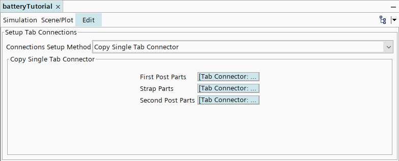 使用第一个接线柱零部件、汇流排零部件和第二个接线柱零部件选项来分配极耳连接器零部件。