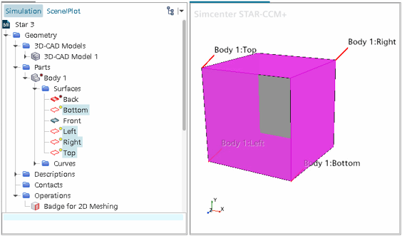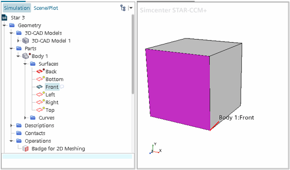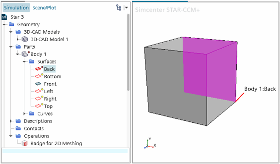 将标记零部件和零部件表面,并可用于选择自动网格 (2D) 操作,如下所示: