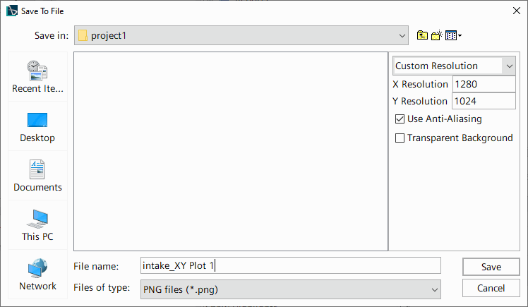 - 已锁定长宽比 -- 输入 X 分辨率或 Y 分辨率的值,Simcenter STAR-CCM+ 会计算另一个分辨率以保持长宽比。