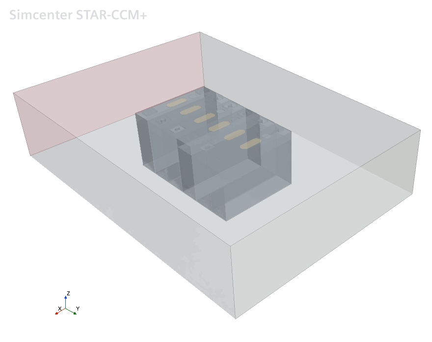 系统提供起始模拟文件,其中包含电池模块几何、预定义的网格操作、区域、交界面、生成的报告、监视器和绘图。该文件还包含两个表,即热率和通风率,用于定义热失控放热模型和热失控电池通风口模型的加热率。