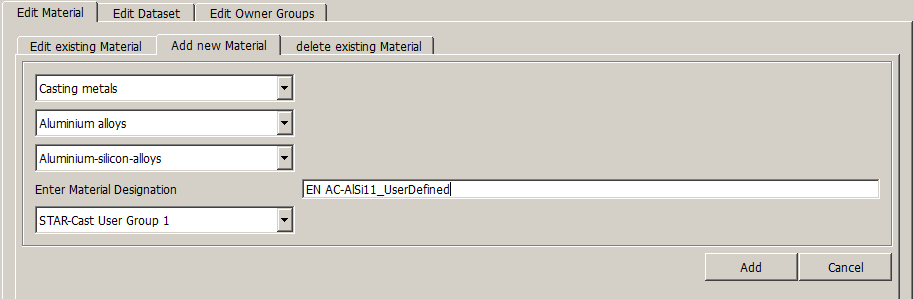 - 选择 Edit Material(编辑材料) 选项卡的 Add new Material(添加新材料) 子选项卡。