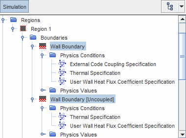 - 当将边界分配到协同仿真区域时,Simcenter STAR-CCM+ 创建一个名为 <原始边界名称> [解耦] 的额外边界。此边界包含耦合边界面,这些边界面未成功映射到合作伙伴网格上的面,因此不参与协同仿真。使用此边界来定义映射失败的面的边界条件。