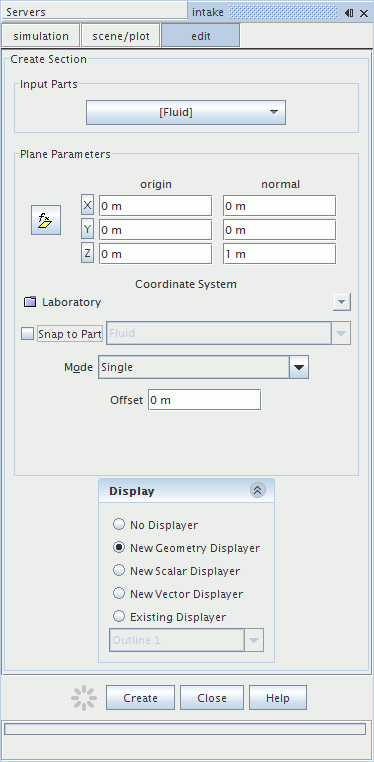 如果场景在图形窗口中处于活动状态,则会显示编辑对话框。否则,Simcenter STAR-CCM+ 会将新的衍生零部件添加到模拟树。然后,可以通过直接设置相应属性来定义衍生零部件。