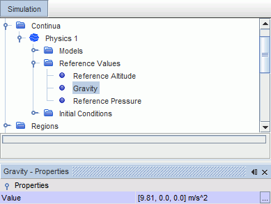 必须定义物理 1 连续体的参考值,以确保在预期的方向因重力作用而加速。在本教程中,在正 X 方向施加重力。