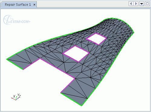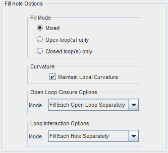 填充混合环孔 混合孔填充器将填充由选定边的连续链或不连续链定义的孔的组合。 如果开环孔和闭合环孔均位于相同的表面内,则此选项很有用。要填充混合环孔: 在图形窗口中,选择定义开环和闭合环的边。 单击 (填充孔)工具旁边的三点以显示填充孔选项。 在填充孔选项组合框中: 将填充模式设为混合。 确定是否希望填充区域保持局部曲率。 请参见保持局部曲率。 设置开环闭合选项模式。 请参见开环闭合选项。 设置环相交选项模式。 请参见环相交选项。 要填充孔,单击 (填充孔)。 系统将填充开放孔和闭合孔。