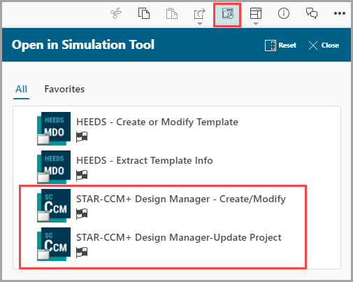 Open in Simulation Tool icon