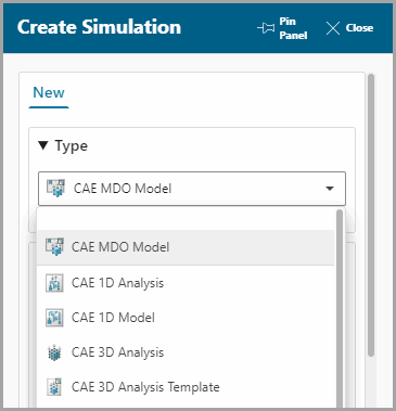 - In the Create Simulation dialog, set Type to CAE MDO Model.