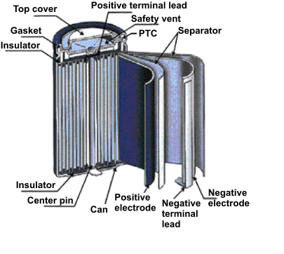 - 串联在正极端子引线与顶盖之间的正温度系数设备。PTC 的电阻随温度大幅增加。通过这种方式,它可起到安全装置的作用,防止电流在电池发热时流动并限制可导致 PTC 升温的强电流。