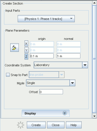 - 在创建截面对话框中,从输入零部件组合框内的选择器中移除默认区域,然后将其替换为属于拉格朗日相的颗粒轨迹对象。 可以选择多个颗粒轨迹对象(如可用)。