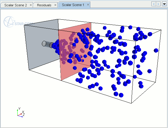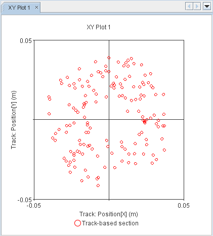 绘图的 X 轴设为显示穿过平面的颗粒的 X 坐标,而绘图的 Y 轴则显示 Y 坐标。 这样即可获得颗粒位置的横截面分布。