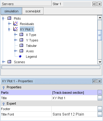 - 选择新创建的绘图节点(在此示例中为 XY Plot 1(XY 绘图 1)),然后在属性窗口中,单击零部件属性的右侧,这样便会显示选择对象对话框。