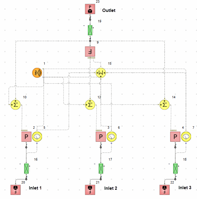 要设置质量流量平衡,首先将入口 (16,17,18) 质量流量连接到