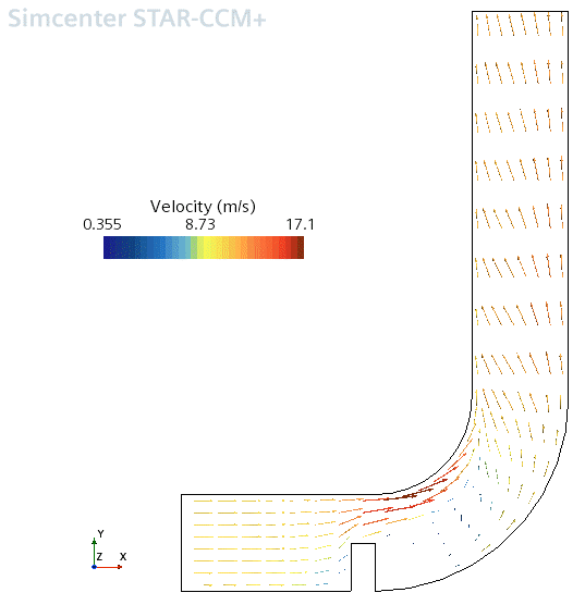 选择矢量场景 1 屏幕以查看收敛求解的速度矢量截面。