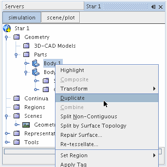 复制零部件将为零部件生成一个完全相同的副本,该副本的属性与原始零部件相同,但区域和接触指定除外,它们留空。 此外,在可以转换之前,副本占据的位置也与原始零部件相同。 如果复制的是 3D-CAD 零部件,则副本是叶级 CAD 零部件,而不是 3D-CAD 零部件。 也就是说,与原始 3D-CAD 模型之间的链接丢失。