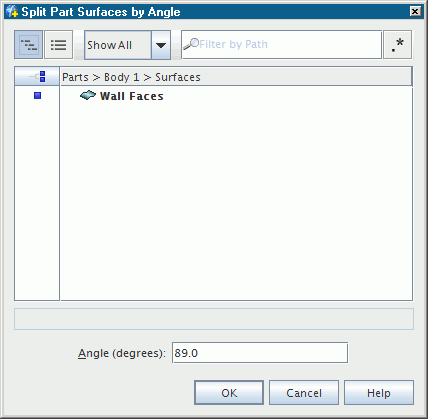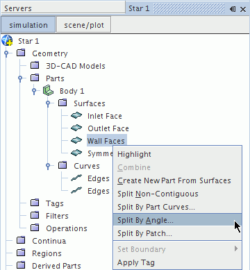 右键单击表面节点,然后从弹出菜单中选择根据角度分割...: