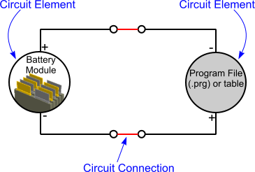 In a circuit, the different circuit elements are connected by circuit connections. See Circuit Connections Reference.