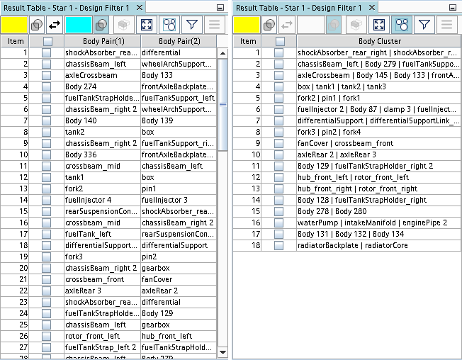 - 默认情况下,结果表显示在 3D-CAD 模拟树和 3D-CAD 视图场景之间。该表是一个可停靠的面板,可以重新停靠在用户界面中的其他位置。