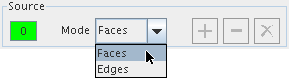 在图形窗口中,添加到源的面或边显示为绿色,添加到目标的面或边则显示为红色。 - 在图形窗口中选择一组边或面,然后单击面板中相应的