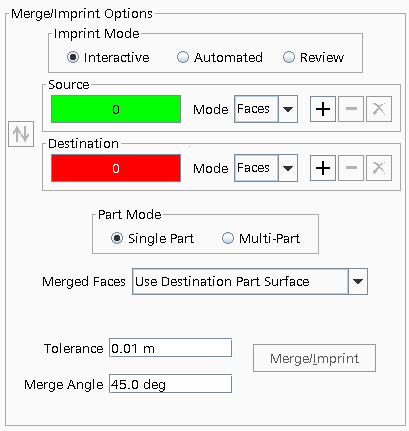 在此模式下,必须先手动将面和边添加到源组和目标组,然后再执行合并或压印。