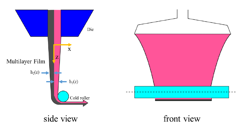 液膜铸造是指从槽模中挤出薄膜,然后在薄膜熔融的同时,用冷金属辊进行拉伸的工艺。薄膜可以包含一层或多层。在铸造工艺中,拉伸的主要目的是将薄膜的厚度减小到所需的水平。薄膜的厚度要远小于其长度和宽度,因此,要分析此问题,必须使用薄膜模型。