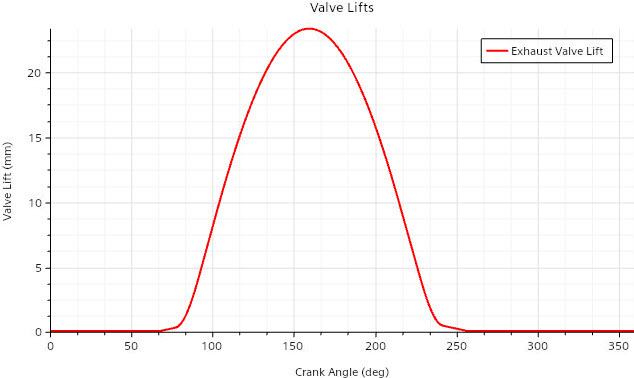 - 选择 twoStrokeEngine_ExhaustValve_vlift.csv,然后单击打开。在图形窗口中,气门升程绘图将打开,其中将气门升程显示为曲柄角度的函数。