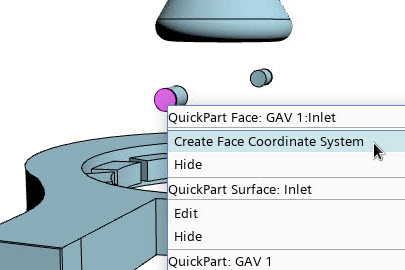 在图形窗口中,右键单击 GAV 1 入口面,然后选择创建面坐标系。