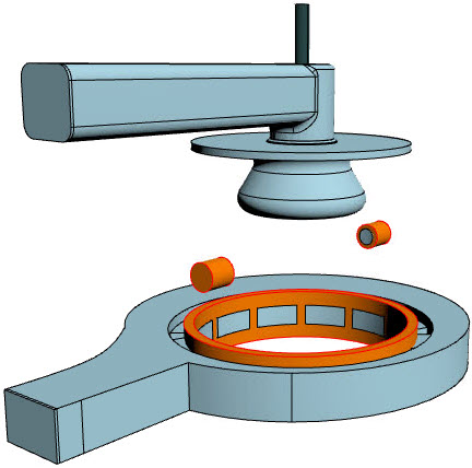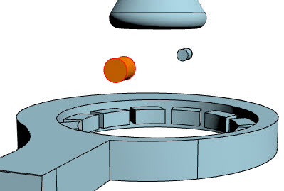组合框 属性 设置 - 名称 外圆柱 几何 高度 24.0 mm 基圆半径 48.5 mm 放置 位置 [X, Y, Z] [0.0, 0.0, -105.0 mm] mm, mm, mm - 同时选择几何 > 外圆柱和内圆柱节点,右键单击其中一个所选节点,然后选择布尔构建几何。