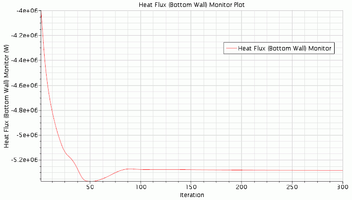 您可为下壁面创建热通量报告、监视器和绘图,以评估稳态求解的收敛。