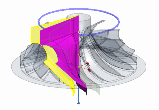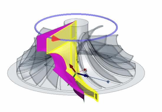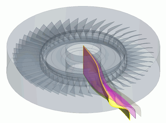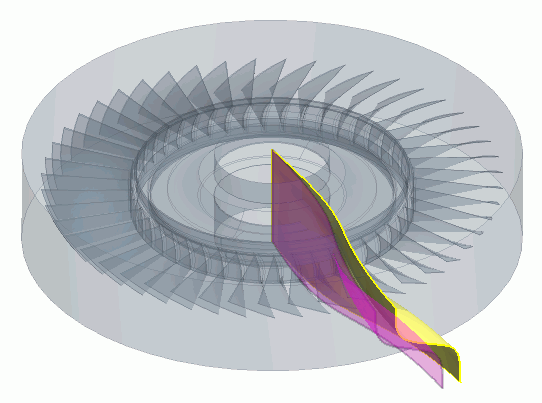 - 对于具有不同叶片类型的径向几何,旋转中性面,使完全叶片和分流叶片之间的间距相等。