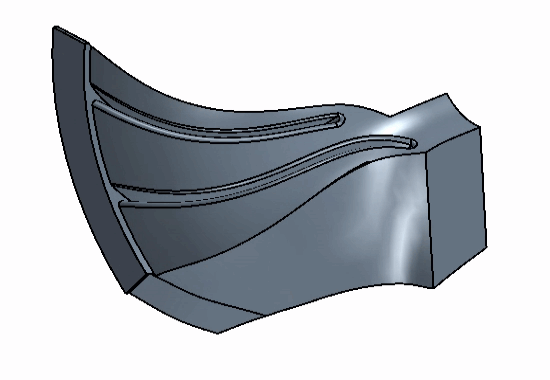 - 对于径向几何,绕相反方向旋转原始中性面,使下一个完全叶片和分流叶片之间的间距相等。