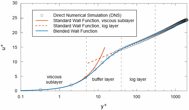 速度的壁面函数描述了内部湍流边界层三个子层中的非量纲量 的分布。