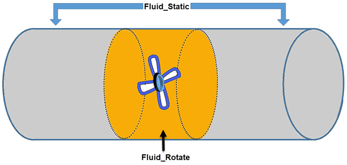 为了将初始流体体积拆分成静态和旋转零部件,首先需要额外创建一个封闭旋转零部件的体形状。有了这一额外的形状,便可分离出稍后要为其分配旋转参考坐标系的零部件。