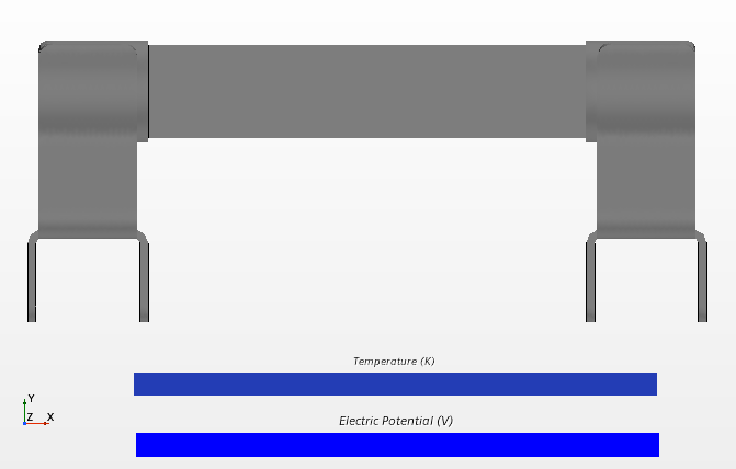 要显示两个接线柱区域的电势和熔断器横截面衍生零部件的温度,请创建单个标量场景。