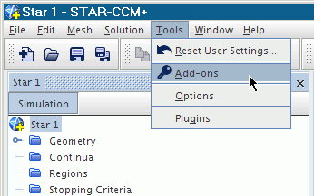 或者,在 Simcenter STAR-CCM+ 仿真树中右键单击根节点,然后选择加载项。