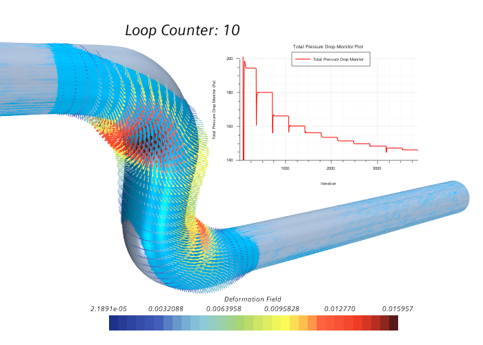 由于形状优化,入口和出口之间的总压降从最初的 194 Pa 下降到了 146 Pa。