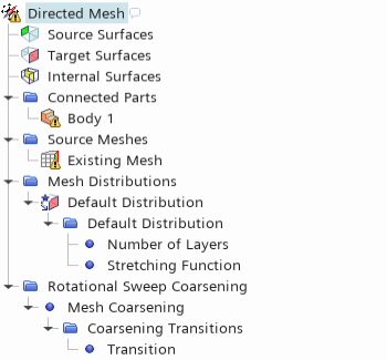 Each [part] node is named after the connected geometry parts that are selected for directed meshing.