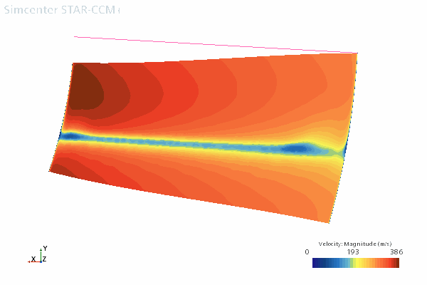 - 选择节点,然后将值设为 0.9。此等值面在第一个叶片的后缘生成旋转的一个子午面,可用于沿子午方向可视化任何标量值的平均分布。