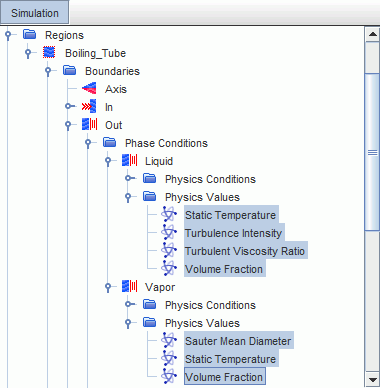 设置入口处的流体和蒸汽相的相条件。修改湍流强度和湍流粘度比,以便让设置匹配初始条件。