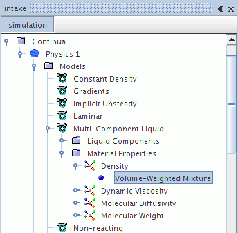 使用体积加权混合 体积加权混合函数适用于非理想气体多组分混合物。使用此函数,可将给定混合物属性 ϕ m i x 定义为:图 1. EQUATION_DISPLAY ϕ mix = ρ mix ∑ i = 1 N ( Y i ϕ i ρ i ) (135)其中: Y i 为 N 组分混合物中第 i 个组分的质量分数。 ϕ i 为 N 组分混合物中第 i 个组分的单个材料属性。 ρ i 为第 i 个组分的密度。 对于混合物密度,这可以简化为:图 2. EQUATION_DISPLAY ρ mix = 1 ∑ i = 1 N Y i ρ i (136) 体积加权混合属性无