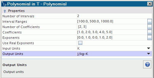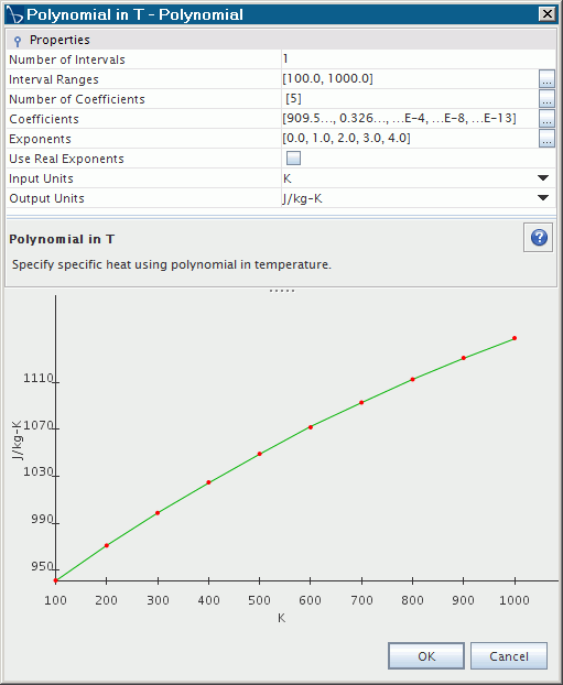 例如,密度和 (如下所示)就是温度的多项式函数。 多项式的属性在自定义对话框中设置,该对话框通过多项式属性的属性自定义工具 (