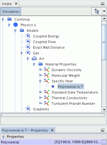 - 单击确定。 执行此操作时,Simcenter STAR-CCM+ 将检查属性间的一致性。 至此,有关使用多项式的示例已阐述完毕。
