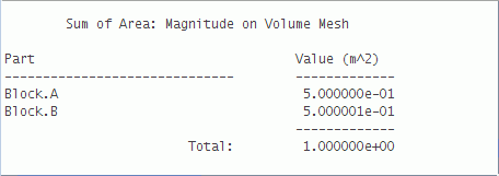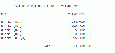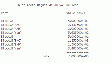 报告 Sum 1(总和 1) 计算这些总零部件表面的子表面网格结果之和,得出总零部件表面的结果。