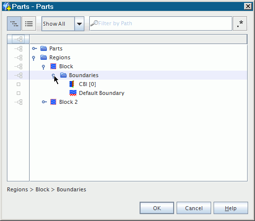 要访问整个交界面边界(使用对象选择器),在区域节点中选择关联区域的对应交界面边界。 此功能的工作方式与基于边界的交界面相同。