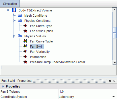 如果选择用户指定,则指定风扇旋流节点将添加到物理值。