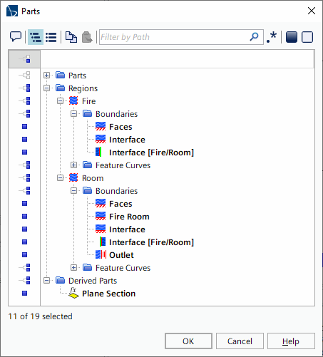 (显示为树)选项,然后选择所有区域和衍生零部件。