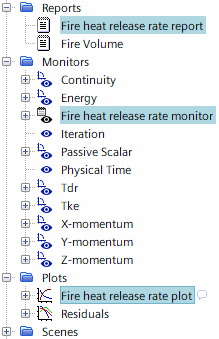 火焰属性设置期间:已自动设置火焰放热率报告、监视器和绘图。