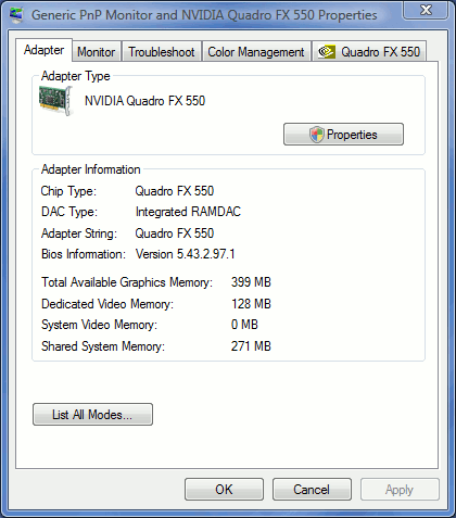 将显示以下带选项卡的对话框,其中选项卡提供关于图形硬件和驱动程序的详细信息。