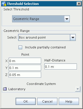 点属性指定框阈值的中心点。 半距指定每个直角方向(x、y 和 z)距中心点的阈值范围。 因此,始终用作阈值的立方体由所有方向上的相同距离来定义。