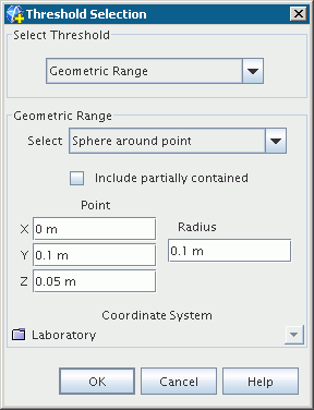 点属性指定球阈值的中心点。 半径指定球阈值的半径,从而指定球阈值的范围。